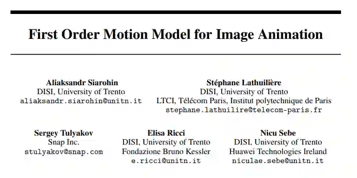 论文链接:https://papers.nips.cc/paper/8935-first-order-motion-model-for-image-animation.pdf