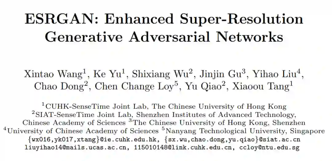 Denis Shiryaev 视频中所用到的分辨率扩增方法为「ESRGAN」,该方法来源于 ECCV 2018 Workshop 论文《ESRGAN: Enhanced Super-Resolution Generative Adversarial Networks》,研究者在 * *SRGAN 的基础上进行了改进,包括改进网络的结构、判别器的判别形式,以及更换了一个用于计算感知域损失的预训练网络,提出了一种 Residual-in-Residual Dense Block (RRDB) 的网络单元。