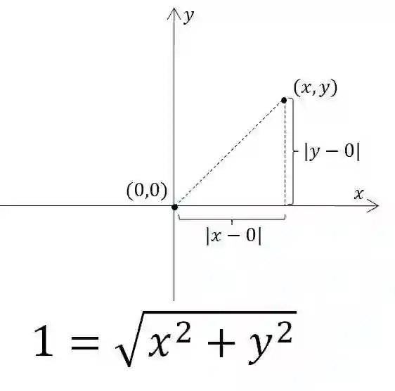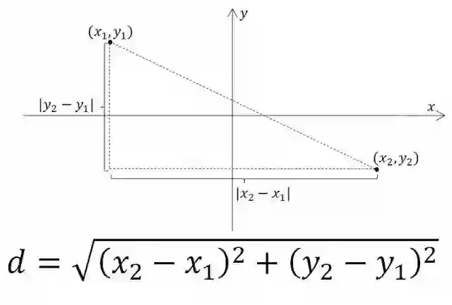 二维平面上的两点间距离公式。细心的小伙伴可能已经发现距离公式和前面提到的圆的方程非常相似。事实上,这里给出的两个公式恰好对应前面图中的两个圆。