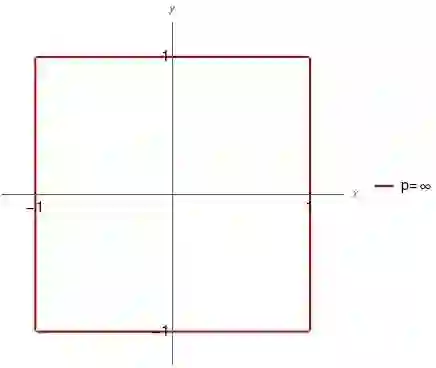 前面讲到的p=2的情形(欧几里德范数),实际上就对应了我们日常生活中所说的“距离”,即在笛卡尔坐标系下两点间的距离公式。当然平面几何中不需要n维向量,只需要二维向量(x,y)就足够了。