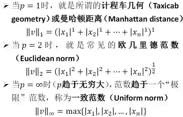 这里我们引入范数(norm,这可是连牛津高阶也查不到的翻译😎)的概念。简单而言,范数可以认为是“距离”或者“长度”概念的推广。而在众多范数中,p-范数与我们的生活最为接近。