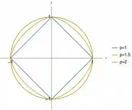 现在让我们再次回到单位圆的问题,考虑一下在不同范数下单位圆的形状有何不同。