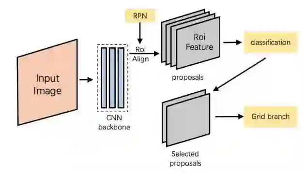 如上图,小的白色的可能是通过RPN+ROI Align产生的region proposal,很明显,没有包含其grid points,这样就会使训练过程效率非常低。