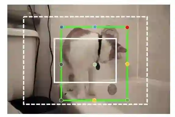 假设我们要图上猫咪的预测边框B中的,那么猫咪上方有三个点,对其进行概率加成求和后取平均就可以得到我们的回归对象.