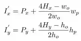 为了解决这个问题,我们修改了输入heatmaps和原始图区域的对应关系,如下公式所示,这样就可以得到上图最大的那个dashed box。注意,只有IOU大于0.5的region proposal才可以进入到Grid branch。
