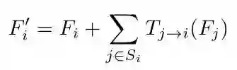 上图为网格点特征融合的结构,图b为GridRCNN的关键点信息传播方向,为了可以分辨不同点的feature map,我们使用NxN组卷积和对最后一个特征图提取特征,因此每个特征图都很明确对应一个gridpoint。对应每一个grid point,与这个点距离1个单位网格长度的点叫做源点,并定义第i个grid point为 ,因此第j个源点经过三个连续的5x5卷积后,然后与原来点的特征图进行融合,这就是图a的情况(一阶融合策略)。当然图b是允许与该点距离为2个单位长度的点进行融合(二阶融合策略)。其中三个5x5的卷积就相当于信息转换算子