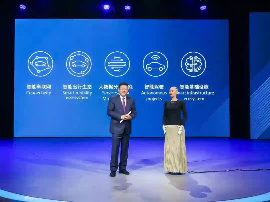 在此次广州车展上,最特别的一幕是 Sophia 机器人来到了台上和大众汽车集团全球执行副总裁苏伟铭进行了一场有趣的对话。而苏伟铭的另一个头衔则是逸驾智能科技有限公司(Mobility Asia)的董事和首席执行官。