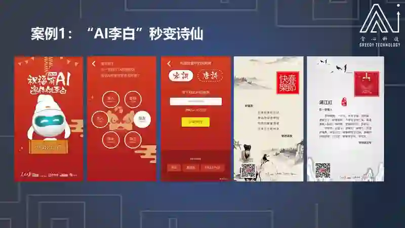 我不知道大家有多少同学接触了这个应用,这是百分点公司和人民日报推出的一个 AI 春节送祝福的应用,相信不少同学都已经用过。它结合了唐诗宋词的韵律和写词的技巧,自动写出带有春节味道的诗词,它就是个写词的机器人。