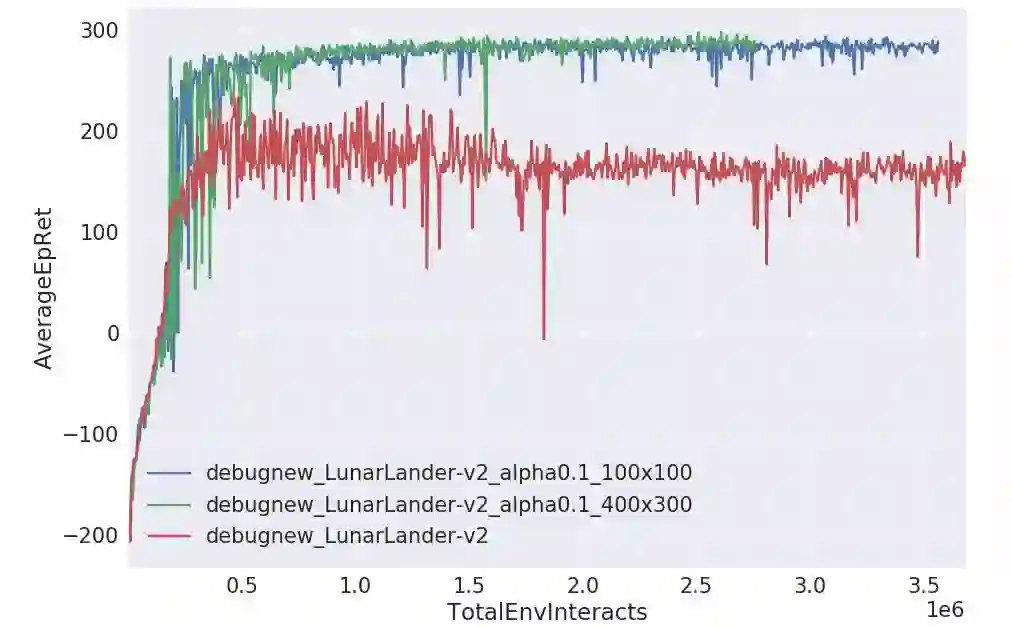 再看LunarLander-v2的效果(也是比较简单了。。。),AverageEpRet就是不上300... : (
