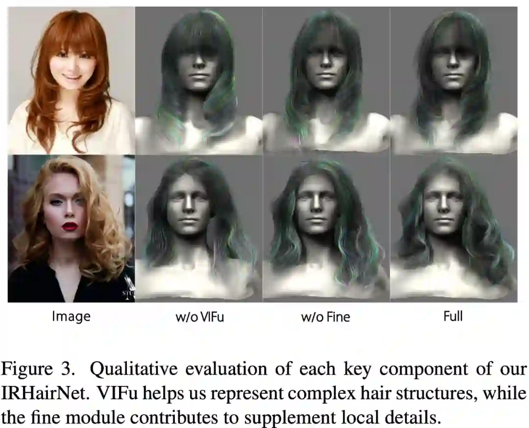 为了解决这些问题,来自浙江大学、瑞士苏黎世联邦理工学院和香港城市大学的研究者提出了 IRHairNet,实施一个由粗到精的策略来生成高保真度的 3D 方向场。具体来说,他们引入了一种新颖的 voxel-aligned 的隐函数(VIFu)来从粗糙模块的 2D 方向图中提取信息。同时,为了弥补 2D 方向图中丢失的局部细节,研究者利用高分辨率亮度图提取局部特征,并结合精细模块中的全局特征进行高保真头发造型。
