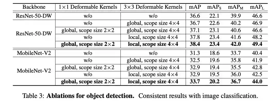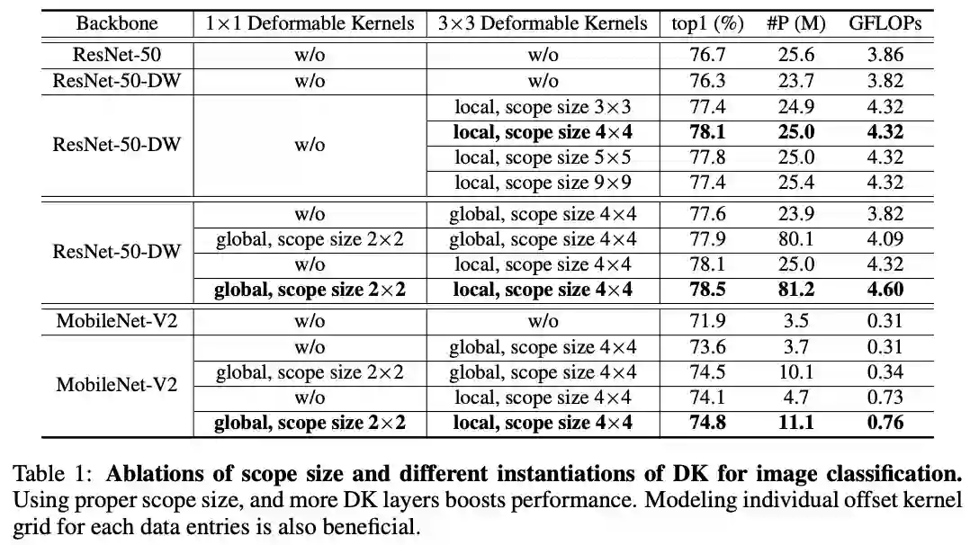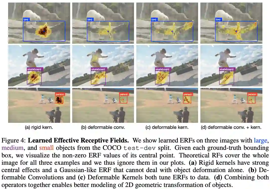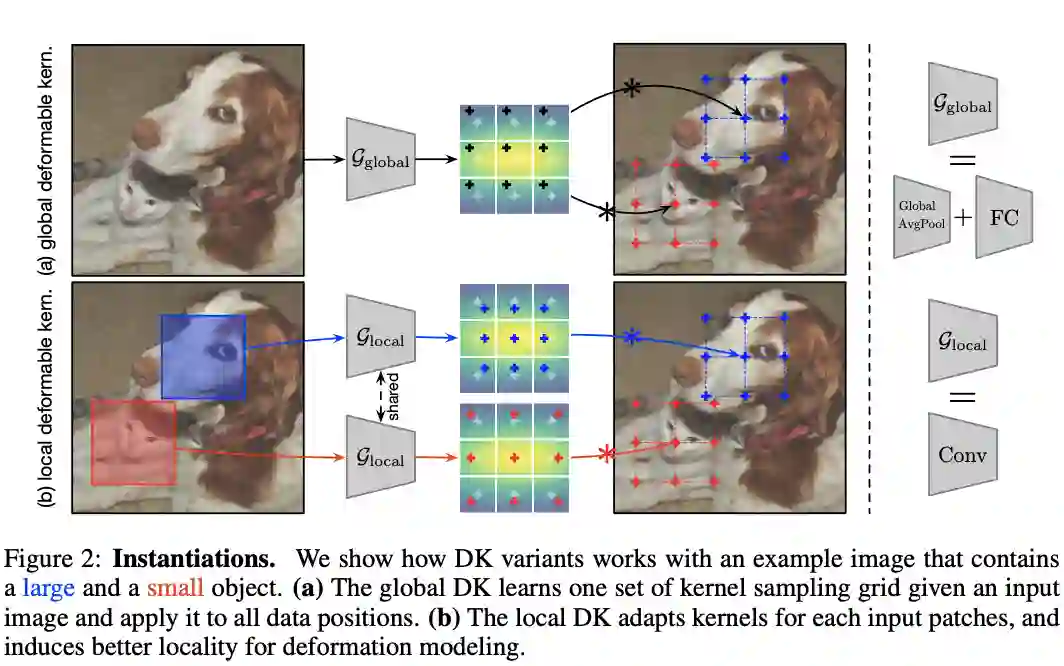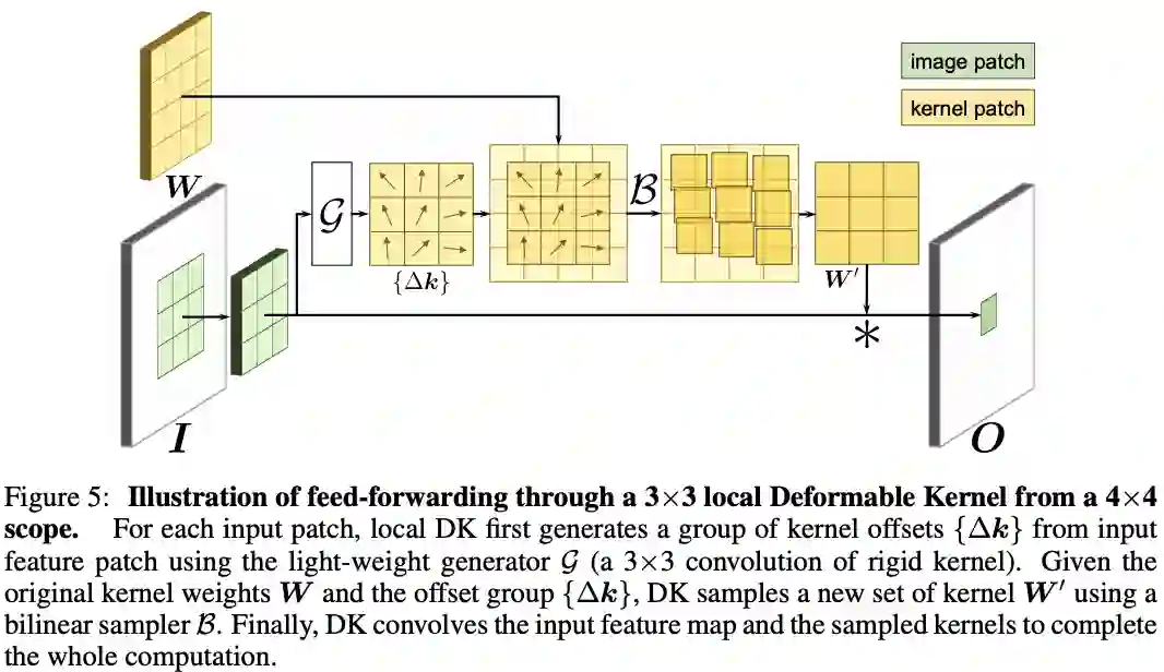 论文提出可变形卷积核(DK)来自适应有效感受域,每次进行卷积操作时都从原卷积中采样出新卷积,是一种新颖的可变形卷积的形式,从实验来看,是之前方法的一种有力的补充。