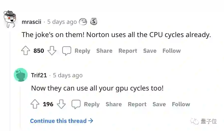 还有用户说,以前我的杀毒软件跑满了CPU,现在终于把魔掌伸向GPU了。