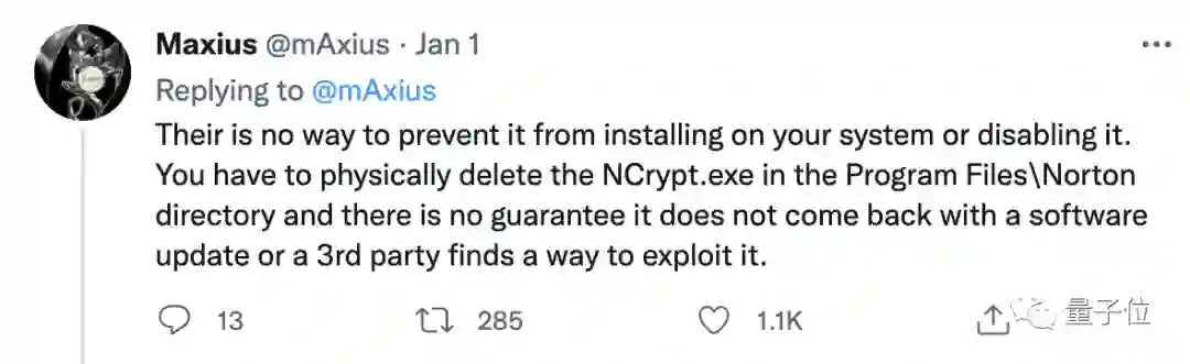 针对大家说的卸不掉的问题,诺顿向The Verge表示,不用担心:先暂时关闭诺顿的篡改保护功能(就点两下的事儿),然后删除exe文件就行。