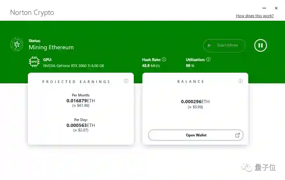 当然,最赚的还是诺顿“本人”,只要尝试这个功能的人多了(有机会尝试的用户还是挺多的,大部分用户用的英伟达GTX 1060就能满足这个挖矿软件的硬件要求),积少成多、聚沙成塔,光抽成它可就能抽一笔不小的数目了。