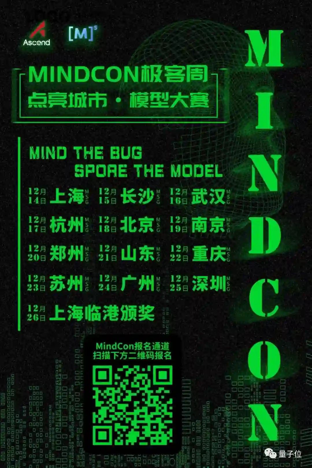 12月14日至25日,MindSpore社区将在目前已展开过MSG活动的12个城市,开展别开生面的“MindCon极客周”活动,在已渐寒冷的冬日,开发者每天聚集在一个城市,修复社区bug,分享学习心得,还可以参加昇腾模型王者挑战赛的青铜赛段。这次活动还首次通过点亮城市的积分评比(新增star积10分、完成bugfix积100、完成青铜赛段任务积200分)方式,12个城市PK产生明年6月第二届MindCon极客周的主办城市。想要了解像AKG这样黑科技的开发者,快来报名吧!