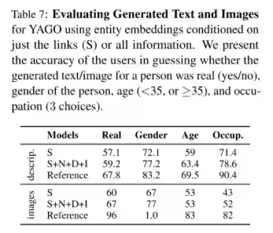 2 生成多模态数据:可以看到,引入了多模态数据之后,产生出来的文本和图片的质量比起仅仅依靠知识库原本就存在的三元组信息产生的文本和图片的质量要高。