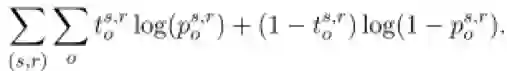其中:t^(s,r) 是一个one-hot向量。如果知识库中存在 <s, r, o> 这个三元组,t_o^(s,r) 值为1,否则 t_o^(s,r) 值为0。