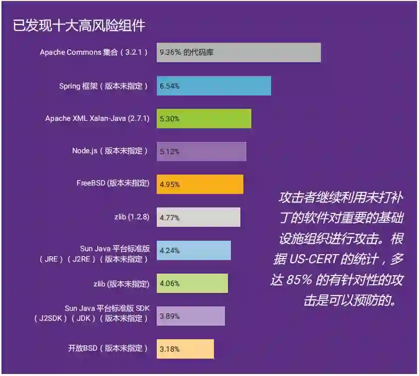 开源软件与定制代码相比,既不是更不安全,也不是更安全。但是,开源软件的某些特性使得流行组件中的漏洞对攻击者非常有吸引力。Black Duck(黑鸭)审计结果显示,现在,开源代码在商业应用和内部应用中无处不在,这在漏洞被披露时为攻击者提供了目标非常丰富的环境。漏洞以及对漏洞的利用通常是通过全国漏洞数据库(NVD,National Vulnerability Database)、邮件列表和项目主页等来源进行披露的。