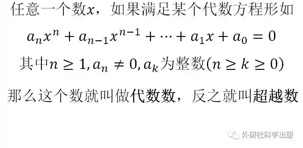 “超越数”这个名字出自欧拉1748年的评论:“它们超越代数方法所及的范围之外。”但直到1844年,超越数的存在性才被法国数学家刘维尔证明。
