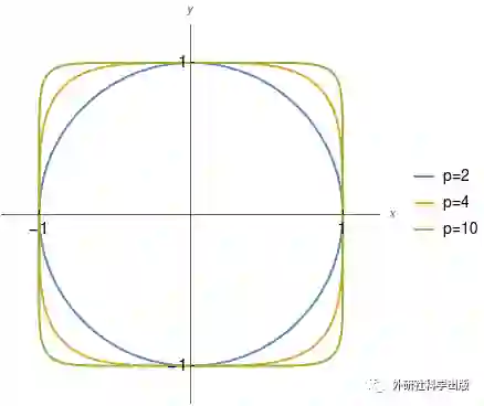 显然随着p的增大,“单位圆”也就变得越来越胖,而且经历了“由方变圆又变方”的奇妙旅程😅