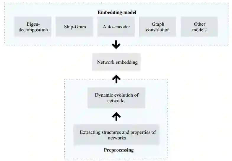 动态网络嵌入由两部分组成,分别是嵌入模型和预处理流程。