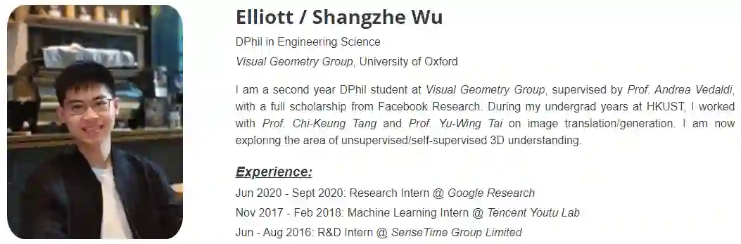 论文一作为吴尚哲(Shangzhe Wu),现为牛津大学博士二年级学生。