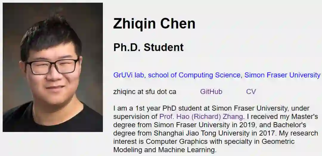 论文一作 Zhiqin Chen,现为西蒙弗雷泽大学博士一年级学生。