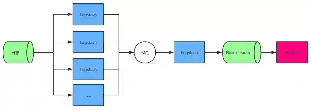 这种架构是基于架构二简化来的,实际在使用过程中也是可以采取的,日志直接进入 MQ,Logstash 消费 MQ 数据即可。