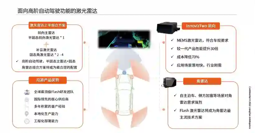 而亮道智能的CSO陈娜则明确提出了推荐的组合方式:「未来我们比较推荐的方式是在一个高精度的主传感器基础上,配备两颗到四颗到辅能激光雷达,而Flash激光雷达则作为角雷达。这或许会是未来的主流方向」。