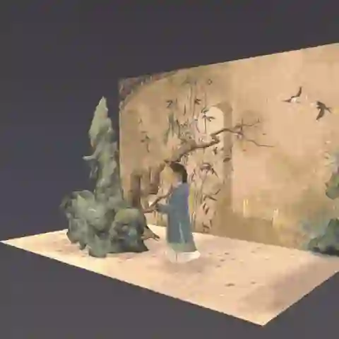 让我们选择这个空间。只见一座缥缈的水云阁楼,烟斜雾横,廊腰缦回,还有一棵红叶古树。竟然是……