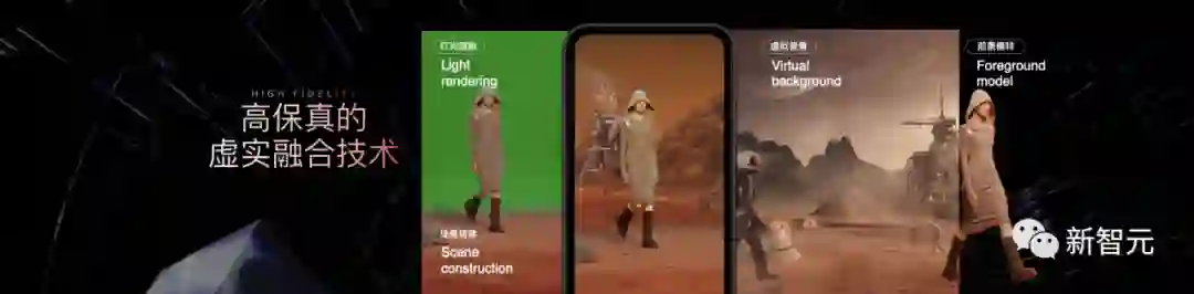 比如,作为背景的火星就是一个3D的虚拟场景,而前景依然是真人模特。