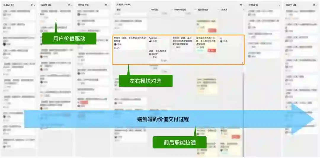 用户价值驱动,前后职能拉通,左右模块对齐,是可视化价值流动的基础