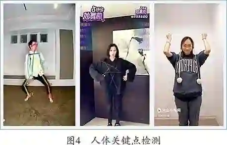最后,利用AI技术,抖音还可以进行人脸识别和关键点检测,为用户提供好玩的创意滤镜、美妆特效(如图3所示),辅助创作。类似的技术也用于人体的关键点检测,通过手机端模型分析,捕捉和识别人体的动作姿态,基于这一技术实现的抖音“尬舞机”等功能颇受用户喜爱。这项技术的另一个应用是短视频美体功能,通过关键点检测技术定位人体的五官和肢体关节,在此基础上变化人体的形状,实现如瘦脸、大眼、长腿、瘦腰等效果(如图4所示)。
