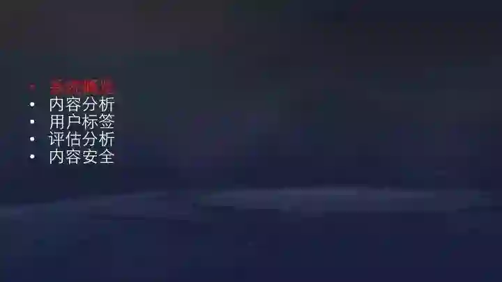 本次分享将主要介绍今日头条推荐系统概览以及内容分析、用户标签、评估分析,内容安全等原理。