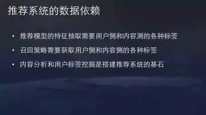 内容分析和用户标签是推荐系统的两大基石。内容分析涉及到机器学习的内容多一些,相比而言,用户标签工程挑战更大。
