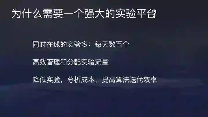 强大的实验平台非常直接的优点是,当同时在线的实验比较多时,可以由平台自动分配流量,无需人工沟通,并且实验结束流量立即回收,提高管理效率。这能帮助公司降低分析成本,加快算法迭代效应,使整个系统的算法优化工作能够快速往前推进。