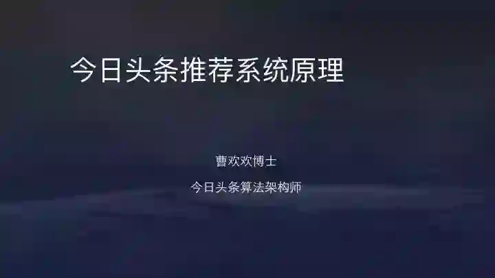 以下为曹欢欢关于《今日头条算法原理》的分享内容(已获今日头条授权):