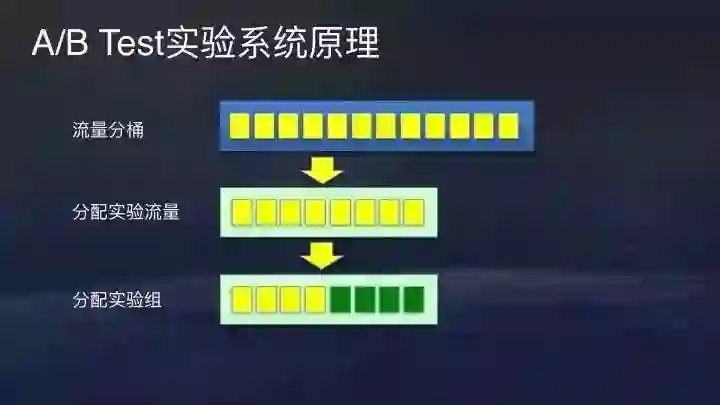 这是头条A/B Test实验系统的基本原理。首先我们会做在离线状态下做好用户分桶,然后线上分配实验流量,将桶里用户打上标签,分给实验组。举个例子,开一个10%流量的实验,两个实验组各5%,一个5%是基线,策略和线上大盘一样,另外一个是新的策略。
