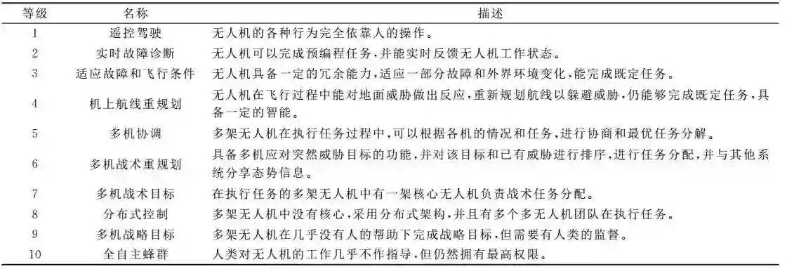 表1 无人机自主控制能力等级划分