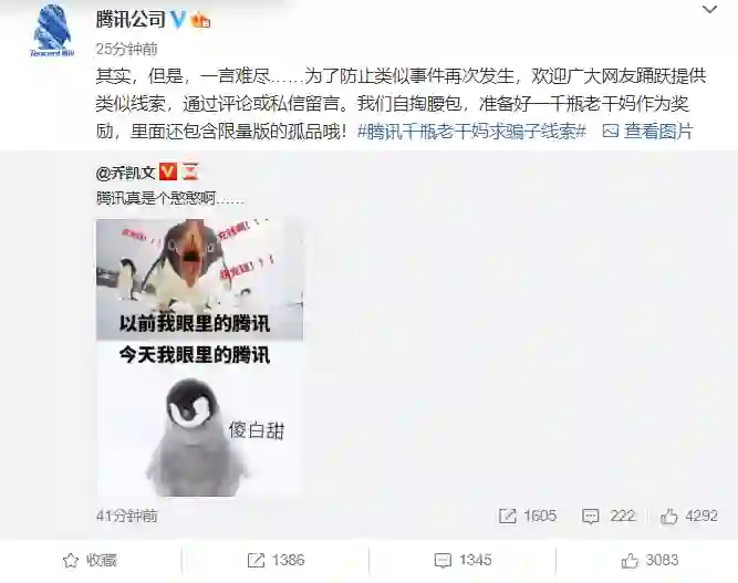 腾讯回应“被骗”:以1000瓶老干妈为礼品征求骗子线索