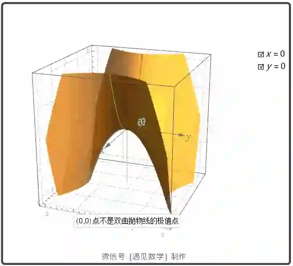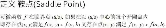 如果D(a,b) < 0, 则曲面某些方向向上, 某些方向向下, 从而会有鞍点的产生.