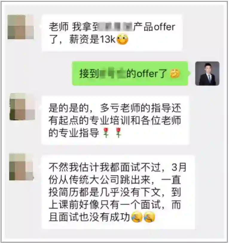 目前这门课,已经帮助了2000+位0基础/弱基础的学员拿下理想Offer,并且收获了来自学员、HR、合作企业源源不断的好评。很开心我也成为了其中之一。