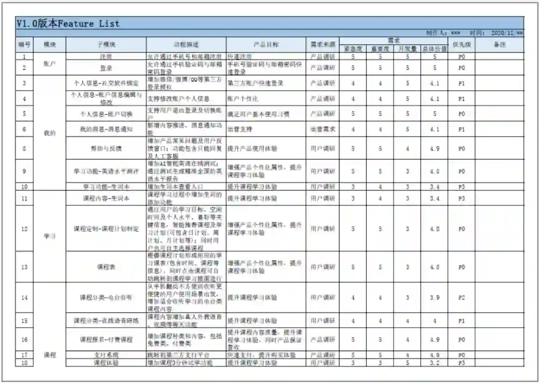 规范的需求分析-Feature List