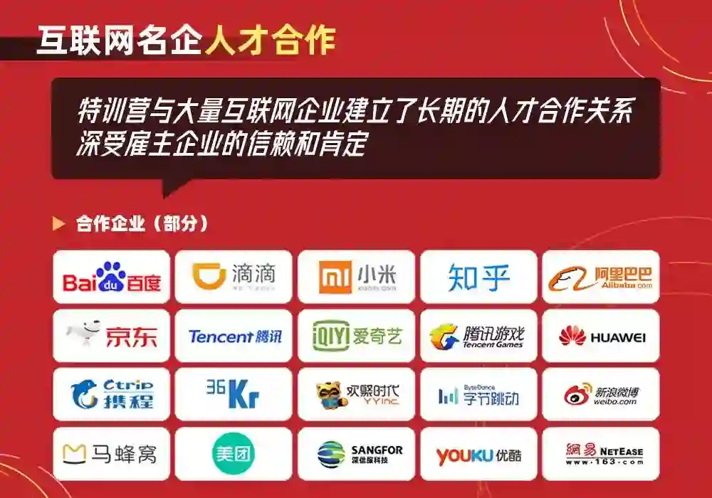 特训营另一个特色在于“就业”,这也是我能拿到理想Offer的最重要因素。它联合互联网名企资源,基于企业招聘需求提供11项求职就业服务,由就业服务老师、招聘管家全程为你支招,直到你能拿到Offer,成功入职为止。
