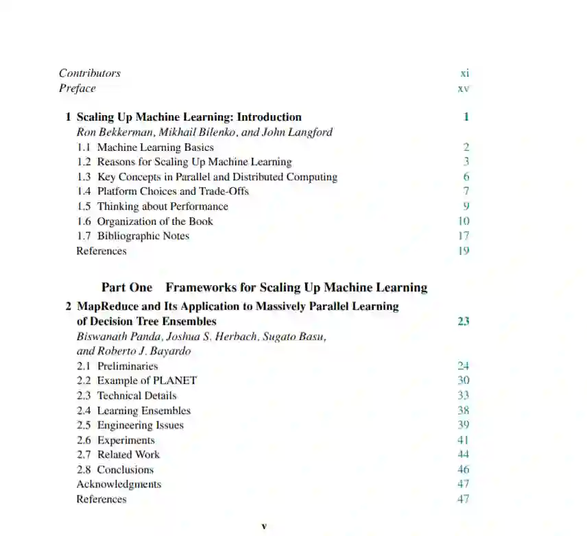 本书介绍了在并行和分布式计算平台上扩展机器学习和数据挖掘方法的代表性方法的集成集合。对并行学习算法的需求是高度特定于任务的:在某些情况下,并行学习算法是由庞大的数据集驱动的,而在另一些情况下,并行学习算法是由模型复杂性或实时性能需求驱动的。为大规模机器学习选择适合于任务的算法和平台,需要了解可用选项的好处、权衡和约束。本书提供的解决方案涵盖了一系列的并行化平台,从FPGAs和gpu到多核系统和商品集群,并发编程框架包括CUDA、MPI、MapReduce和DryadLINQ,以及学习设置(监督、非监督、半监督和在线学习)。广泛的并行化的推进树,支持向量机,谱聚类,信念传播和其他流行的学习算法,并深入到几个应用,这本书适合用的研究人员,学生,和从业者。
