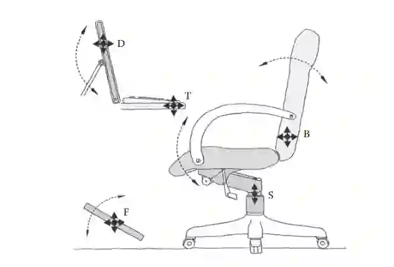 座椅调节自由度高(可以调节座椅高度,靠背倾斜程度,颈托高度)。这些调节可以满足我们前面说到的三种推荐坐姿。有些座椅靠背可以后仰,但不容易保持后仰的姿势。除此之外,如果座椅可以调整扶手高度、方向,则可以更好的支撑我们的肘部。