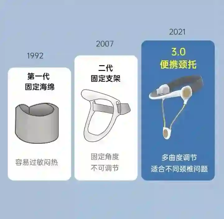 出于好奇,也出于实证精神,我买来了两款颈托实际试用,结果发现并没有用。这两款颈托能够防止低头,但不能防止头前引。当头向前时,颈托会跟随脖子向前移动。戴着颈托不仅没能防止我头前引,还让我颈椎更加酸痛。没有佩戴颈托时,我会头前引,同时也会时不时地活动脖子,但佩戴颈托之后,反而限制了我的活动,脖子肌肉更容易僵硬、酸痛。