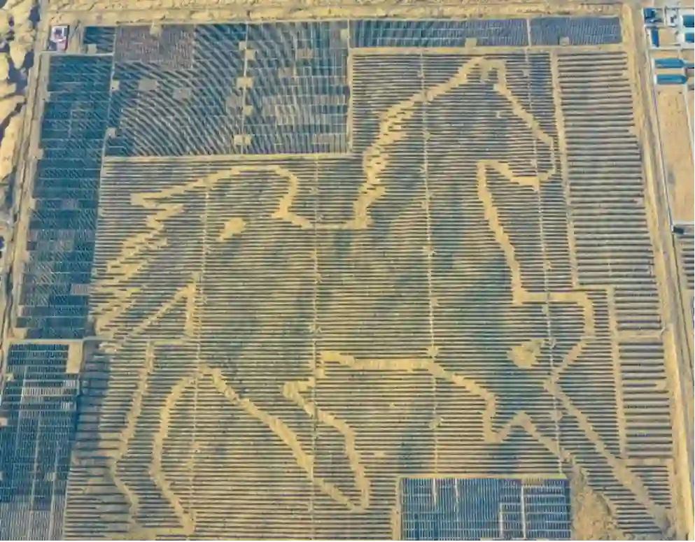 如果从库布其沙漠的空中俯视,会看到一匹蓝色骏马正驰骋于沙漠之间,这是由国家电投内蒙古公司投资建成的「骏马电站」。充分利用了光伏板与周围低矮植被、黄沙间的色差,19.6万余块光伏板组成一匹奔腾的骏马。2019年7月,骏马电站正式通过吉尼斯世界纪录认证,成为世界上最大的光伏板图形电站。