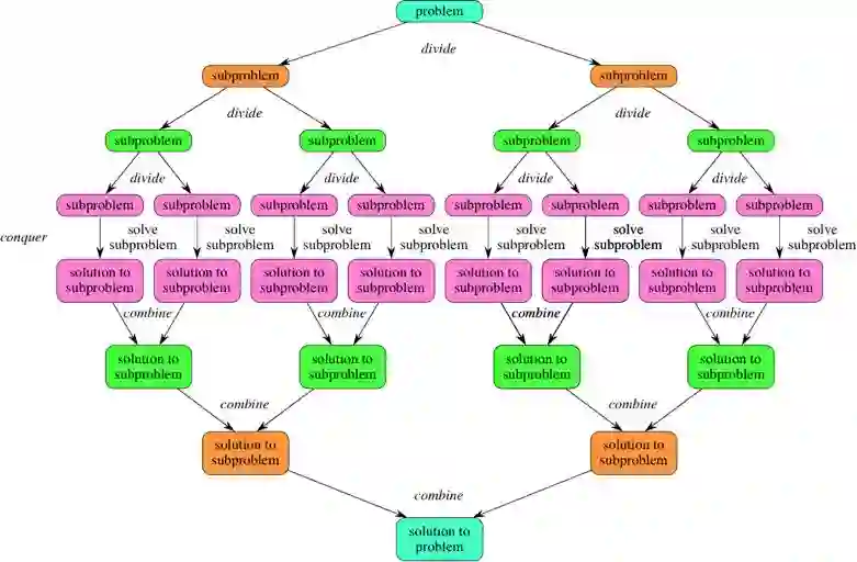 对于一个无法一次解决的大问题,我们会先把大问题分解成若干个子问题,如果子问题还无法直接解决,则继续分解成子子问题,直到可以直接解决的程度,这个是分解(divide)的过程;然后将子子问题的解组合拼装成子问题的解,再将子问题的解组合拼装成原问题的解,这个是组合(combine)的过程。