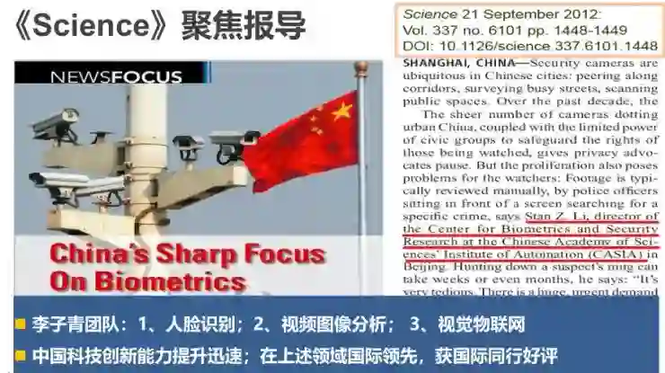 2012 年世界科学节顶级刊物《Science》对我进行了采访,介绍了我们在人脸识别、图象分析和视觉物联网方面的成就,并以此说明中国国力和创新能力迅速提升,在上述领域做到国际领先,并且获得了国际同行的好评。
